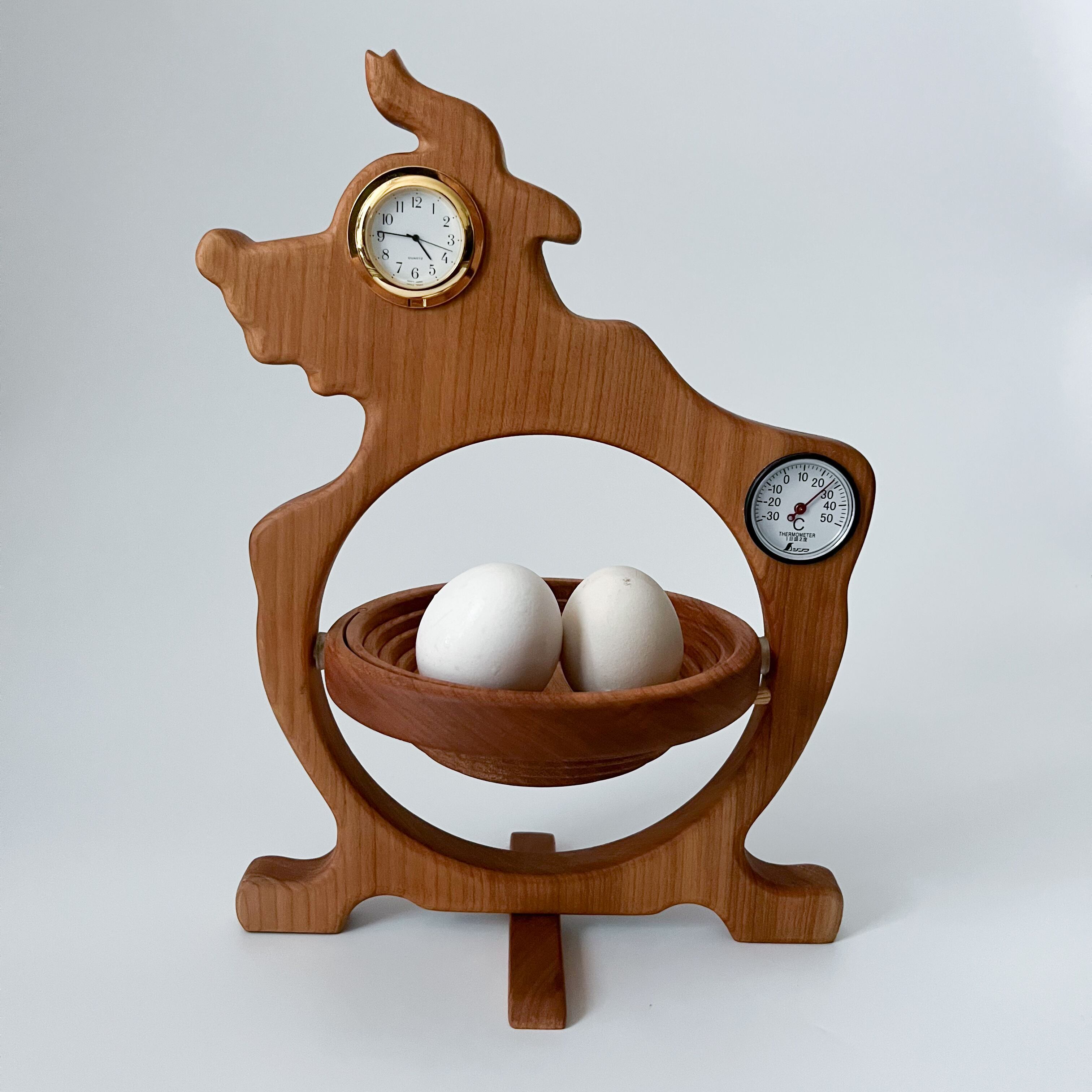 オブジェ、小物入れとしても両方使える商品です。目の部分がはめ込み式の時計でオシャレです。