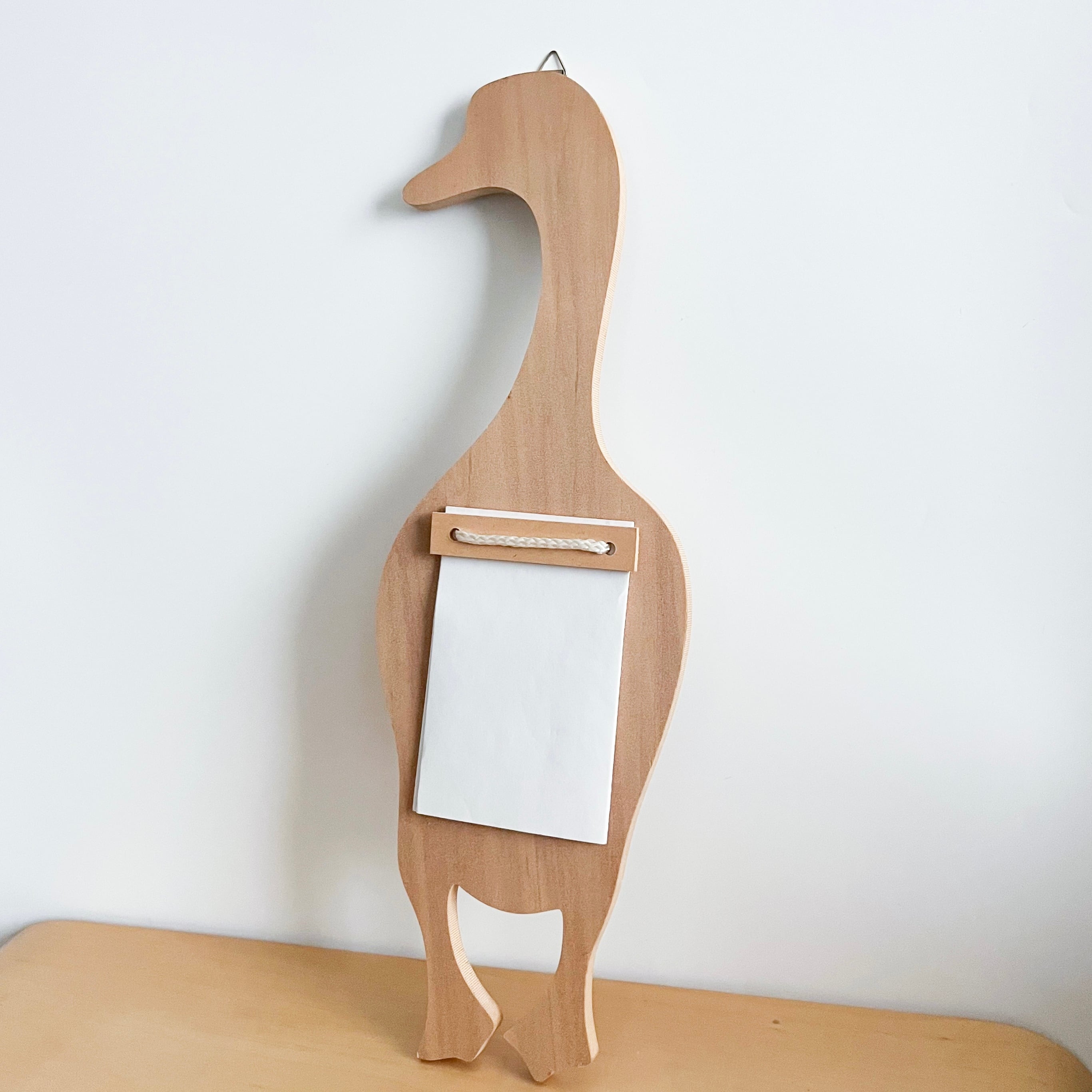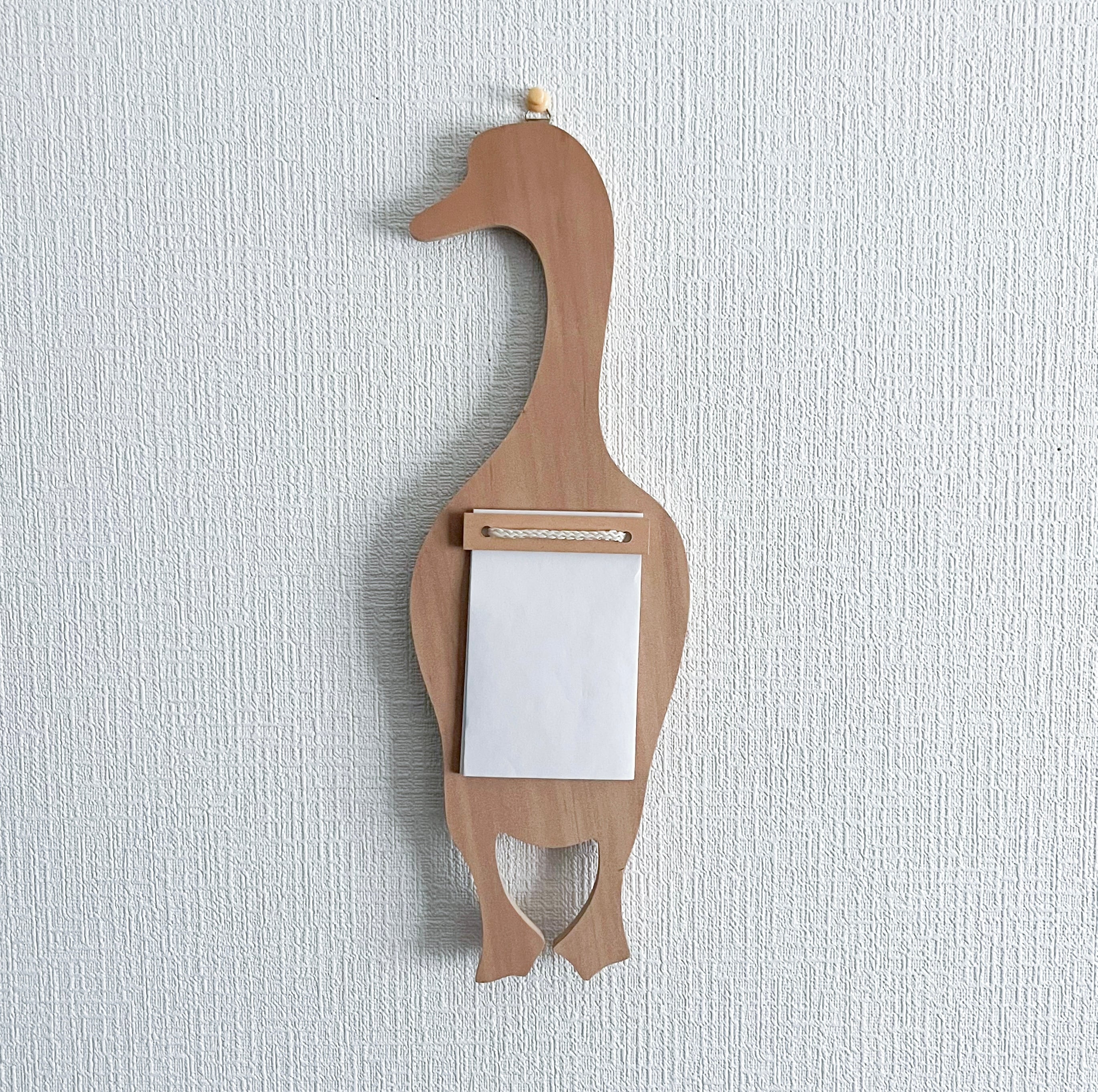 アヒルの形をした木製のメモホルダー