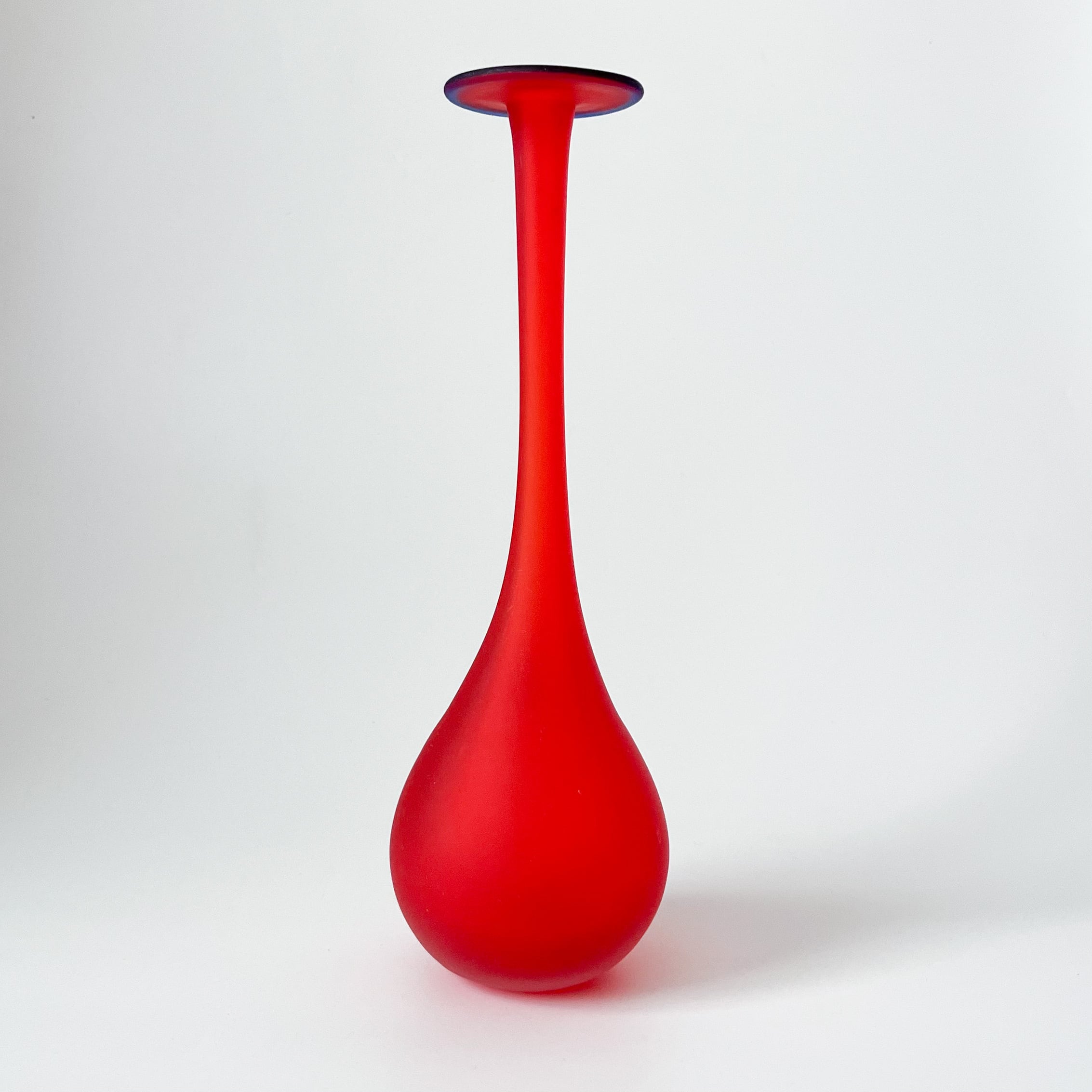 綺麗な赤色が目を引く、存在感のあるフラワーベース。丸みのある形も美しく、シンプルなお部屋のアクセントとしてもおすすめです。